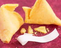 Quand vous sortez les biscuits du four, décollez-les puis glissez vos messages dans chacun de vos biscuits avant de les replier en deux et de leur donner la forme désirée.