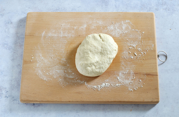 4Transférez la pâte sur le plan de travail fariné, pétrissez jusqu’à obtenir une pâte lisse.
