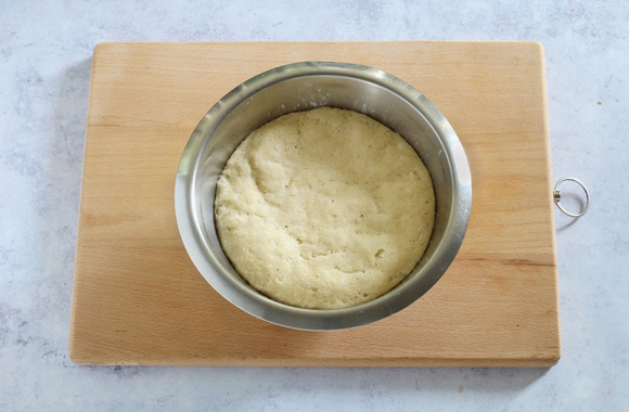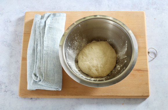 Façonnez la pâte en boule, remettez-la dans le saladier, couvrez avec un linge propre et laissez lever 2 heures.