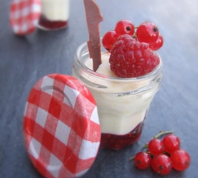 Sortir du réfrigérateur un peu avant le service et décorer de fruits rouges