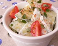 - Mettez le concombre dans un saladier. - Ajoutez le fromage blanc, le jus de citron et l'assaisomment.