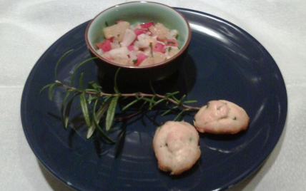 Pour une entrée tout en fraicheur ou une petite verrine apéritive, des dés de saint-jacques crus marinés au gingembre.