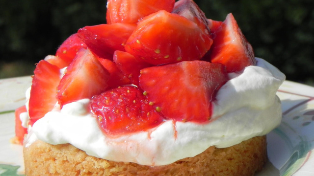 Au moment de servir, préparer la chantilly. Fouetter la crème au batteur électrique. Quand elle commence à prendre, ajouter le mascarpone et le sucre glace. Démouler les shortbreads. Disposer la chantilly puis les fraises. Servir de suite.