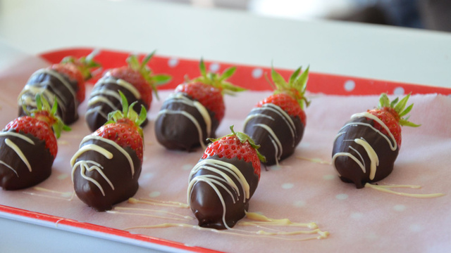 Faire fondre le chocolat blanc au bain marie ou au micro onde, le mettre dans un "stylo" à pâtisserie ou dans un cône de pâtisserie et décorez les fraises comme bon vous semble. Laissez prendre également quelques temps puis mettre au frais jusqu'au moment de servir.
