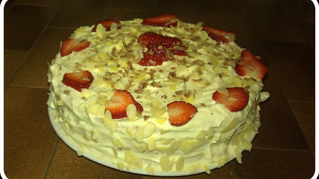 Les incorporer délicatement au mélange mascarpone à l'aide d'une maryse - 3MontageDécouper la génoise en deux ou trois premier disque de génoise, l'imbiber de jus de fraises y étaler une bonne couche de mascarpone, parsemer de fraises coupées en dés et ensuite couvrir avec le deuxième disque de génoise: imbiber de jus de fraises,remettre une couche de mascarpone dessus et sur les côtés afin de recouvrir les deux disques, parsemez de fraises et renouveler l'opération si vous avez coupé votre génoise en 3...