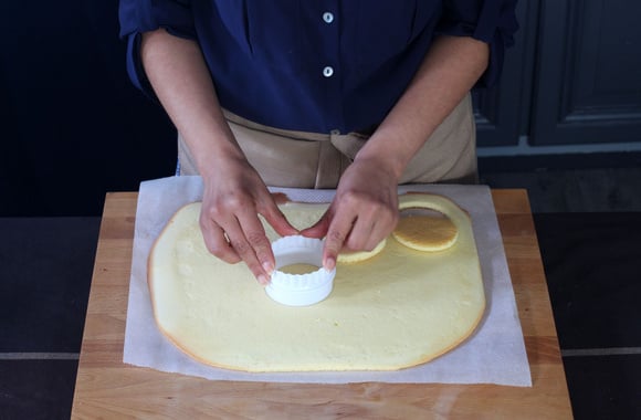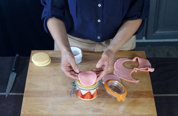 13Découpez des cercles dans la pâte à génoise à l'aide d'un emporte pièce de la même dimension que votre bocal.