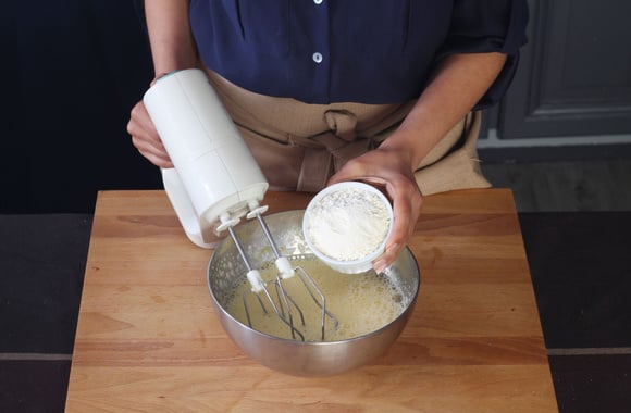 2Ajoutez la farine tamisée et mélangez délicatement à l'aide d'une spatule.