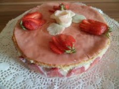 Couper la génoise en deux. Avec un cercle à pâtisserie régler sur 24 cm découper deux disques de génoise..imbiber de sirop de fraises les deux disques ne pas trop les imbiber. Etaler la pâte d'amande sur un plan de travail fariné.. Toujours à l'aide du cercle à pâtisserie former un disque et posez le sur une feuille de papier cuisson. Recouvrir le contour du cercle avec une bande de papier sulfurisé ou de film rhodoïd. Poser le premier disque au fond du cercle. Poser les fraises couper en deux autour du cercle. Verser la moitié de la crème mousseline étaler celle-ci même entre les fraises avec une spatule, poser quelques fraises couper en petit morceaux. recouvrir avec le second disque.. étaler une couche de crème puis couvrir avec un disque de pâte d'amande rose. Vous pouvez décorer avec une rose en forme de pâte d'amandes ainsi que des fraises. Mettre au frigo pendant toute un nuit. C'est prêt ! http://nosmeilleurespatisseries.overblog.com/