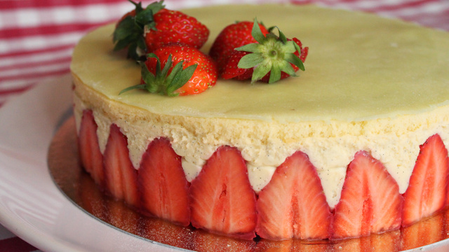Fraisier garni d'une crème mousseline à la vanille et de fraises "Ciflorette"