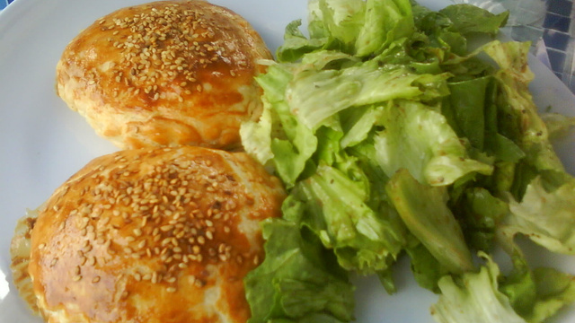 Refermer avec l'autre partie en soudant bien les bords. Étaler le jaune d'oeuf sur les friands et saupoudrez de sésame.