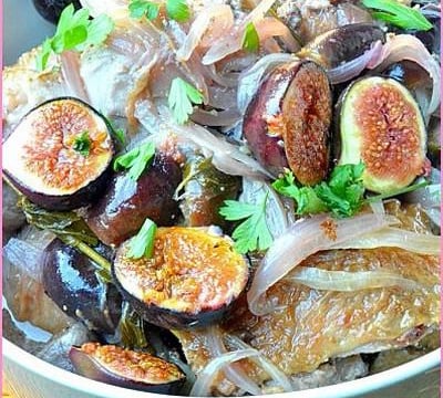 Une petite fricassée un peu sucrée- salée. La figue va fondre à la cuisson et apporter couleur et douceur à la recette.
