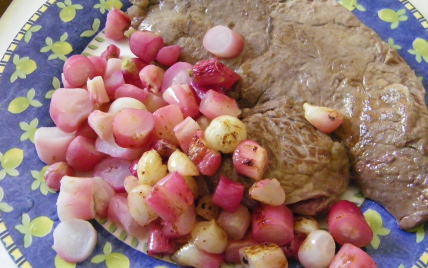 Ces radis peuvent être servis en accompagnement d'une viande blanche ou une crêpe complète.