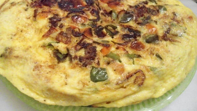 Ajouter les pommes de terre en rondelles que vous aurez fait cuire dans de l'eau bouillante au préalable. Éteindre le feu, répartir les ingrédients dans la poêle uniformément.