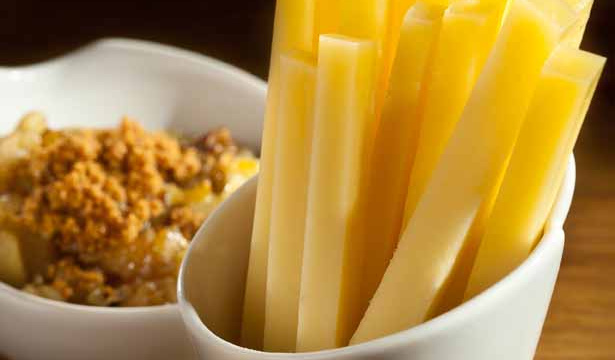 Ajouter au final la chapelure de speculoos et servir tiède avec les frites de Comté.