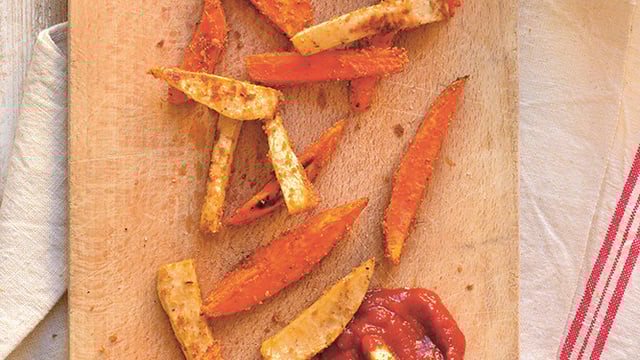 Les enfants raffolent des frites, c’est bien connu. Si certains ne pouvaient manger que ça, ils le feraient sans hésiter. Ils les aiment, car elles sont grasses, croustillantes, et à la fois salées et sucrées. Voici une recette de frites rouges dont le croustillant, le gras et le sel sont apportés par le parmesan, qui fournit en plus une dose de calcium. Quant au sucre, on sauve la mise avec la patate douce qui en a le goût, mais pas l’indice glycémique élevé.