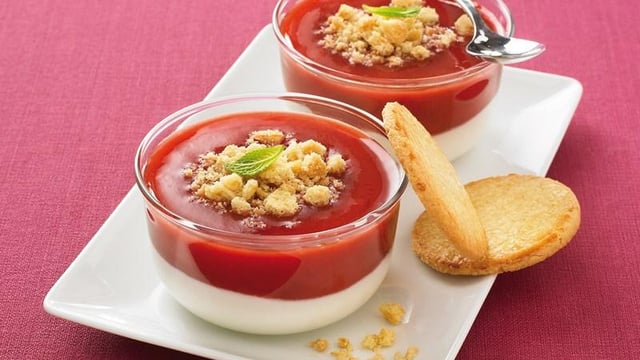 Versez ensuite délicatement la même quantité de Mon dessert de fraises Andros