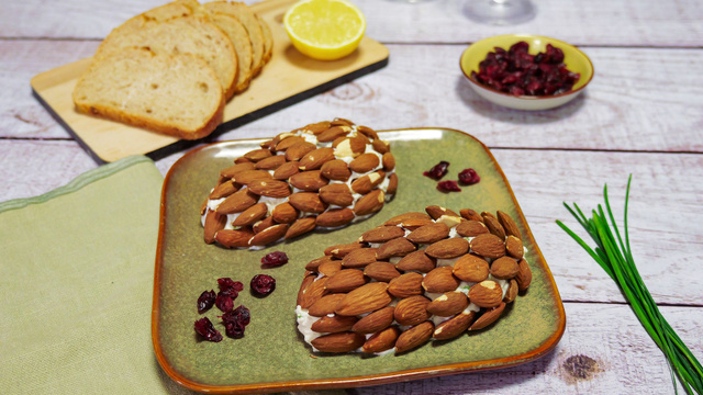 Vous pouvez également utiliser des amandes effilées pour réaliser cette recette. Pour cela, il vous suffit de les faire torréfier quelques minutes à sec dans une poêle puis de les piquer dans le fromage. Effet garanti !