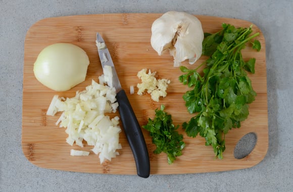 3Hachez l'oignon, l'ail et le persil