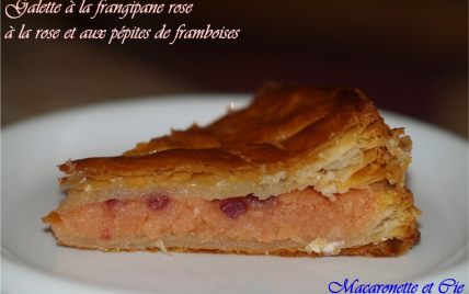 Galette fourrée à la frangipane rose parfumée à la rose et de pépites de framboises