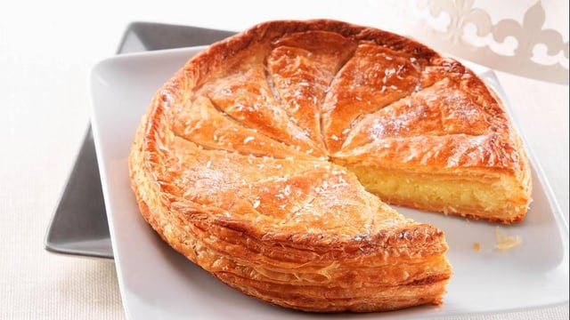 Etaler 1 disque de pâte sur 1 feuille de papier sulfurisé, badigeonner le bord avec 1 jaune d'œuf. Garnir avec la crème en laissant un bord libre de 2 cm, ajouter la fève.