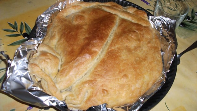 Déroulez la pâte. Etalez le mélange en évitant les bords.