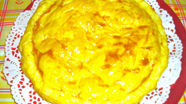 Galette fourrée de compote et de pommes caramélisées.