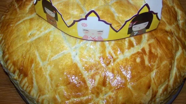 Garnir la pâte pré cuite avec l'appareil ne pas oublier la fève. Poser la seconde pâte par-dessus et souder à l'aide fourchette. Étaler le jaune d'œuf délayé avec un peu d'eau.