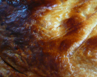 Mélanger un œuf avec une CS de lait, et badigeonner la galette. La laisser reposer 30 minutes au réfrigérateur. Vingt minutes avant la fin, préchauffer le four sur 240°.