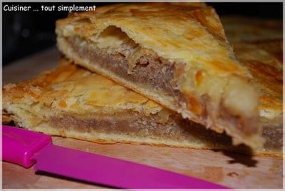 Mettre la deuxième pâte feuilletée après avoir mouiller le bord de la première avec de l'eau. Coller les deux pâtes en appuyant avec les doigts. Dorer avec un jaune d'oeuf.