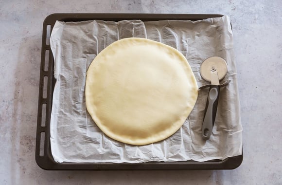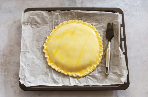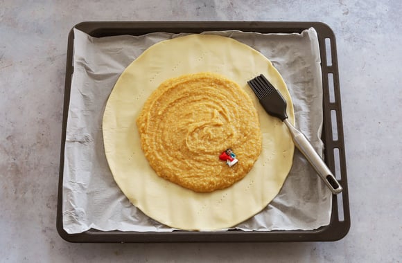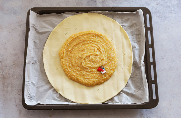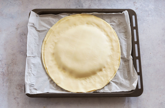 9Recouvrez le tout d'un deuxième cercle de pâte feuilletée et appuyez sur les bords afin de les souder.
