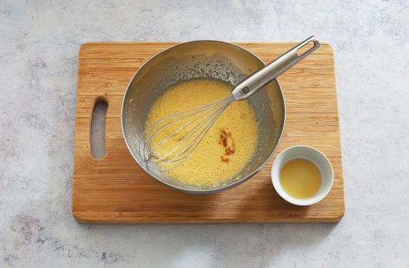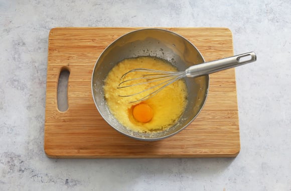 2Ajoutez les œufs un à un, mélangez de nouveau avec le fouet.