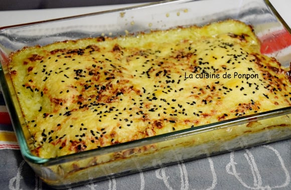 3Parsemer de fromage râpé et de nigelle. Enfourner dans un four préchauffé à 180°C + grill pendant 6 min, le temps qu'une belle croûte dorée se forme. Servir aussitôt.
