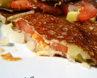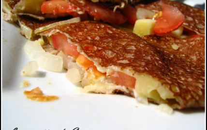 Il s'agit d'une bonne galette de blé noir avec des tomates des petits oignons fondants et du bon fromage fondant.
