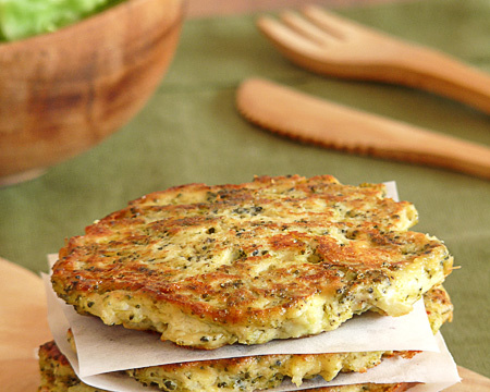 Faire chauffer une poêle avec un peu d'huile d'olive. Prélever une cuillère à soupe de préparation et la déposer dans la poêle. L'aplatir et lui donner une forme ronde. Cuire environ 5 minutes de chaque côté, à feu moyen. Les galettes doivent être bien dorées.