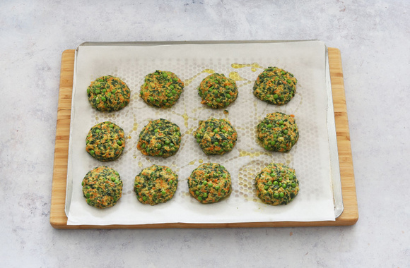9Avec vos mains, formez des galettes, déposez-les au fur et à mesure sur une plaque recouverte de papier sulfurisé. Aplatissez-les délicatement avec la paume de votre main.
