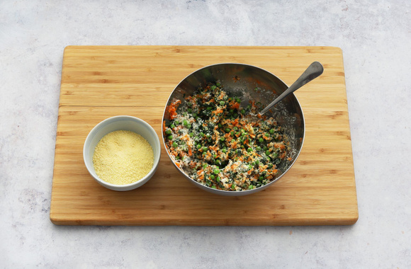8Ajoutez la chapelure, mélangez de nouveau.
