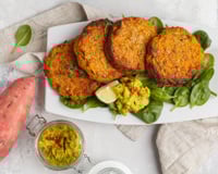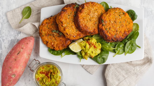 Passez au mixeur la patate douce en laissant quelques morceaux, ajoutez les lentilles, et les autres ingrédients et mélangez bien. Formez de boules, faites chauffer votre poêle avec un peu de margarine et faites dorer 3 minutes de chaque côté. Appuyez pour former les galettes.