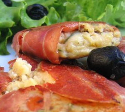 Entourer les galettes de jambon Serrano et les faire griller à nouveau de chaque côté 30 secondes seulement de chaque côté.