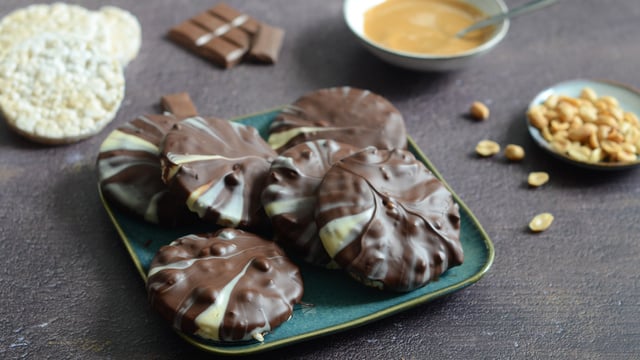 Privilégiez les cacahuètes salées. C'est le contraste entre la fleur de sel (ou le sel) et le chocolat noir qui donne ce goût si caractéristique à ces galettes de céréales façon snickers.
