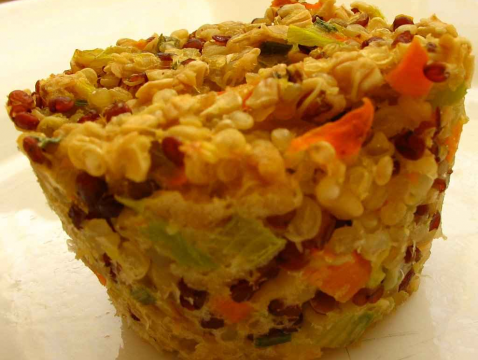 Battre les oeufs avec la crème, ajouter les légumes, le quinoa et le fromage râpé.