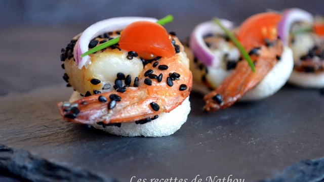 Je dois dire que ça change des petits toasts habituels !J'en ai profité pour essayer le sésame noir qui s'associe très bien aux gambas :-)