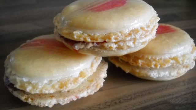 Laisser refroidir et garnir de macarons avec cette ganache et déposer au centre un peu de confiture de framboises !