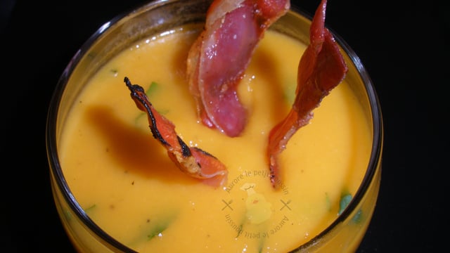 Préparez les chips de jambon en faisant des bouts de tranche dans une poêle bien chaude sans matière grasse ou éventuellement une plancha.