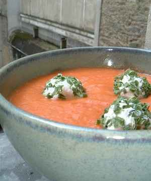 3/ Servir le gaspacho onctueux très frais avec les petites billes dessus.