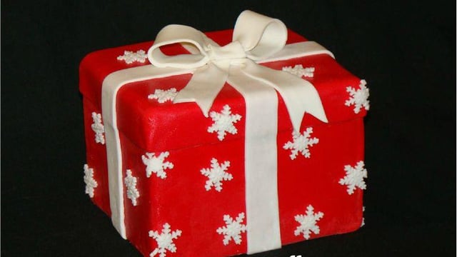 Placez les 2 bandes avec un nœud sur le gâteau de façon à lui donner une force de cadeau de Noël.