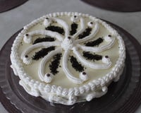 Coupez la génoise refroidie en 2 ou 3 disques, au choix, et garnissez chaque tranche d'une couche de crème au chocolat blan puis nappez le dessus et le tour de crème au chocolat blanc.