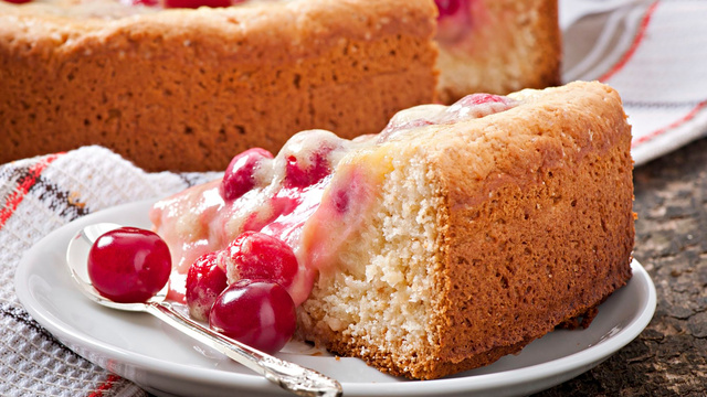 Un gâteau molleux avec un coeur fondant aux cerises.
