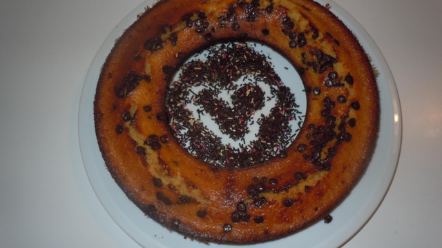 Versez la préparation dans un moule à gâteau beurré et enfournez. Après cuisson, saupoudrez de noix de coco.