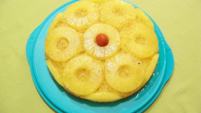 Gâteau léger, moelleux et fondant, fait d'un irrésistible caramel coulant qui entoure les tranches d'ananas...