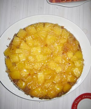 - 3Beurrer un plat allant au four. Mettre dedans les ananas ensuite la pâte dessus.